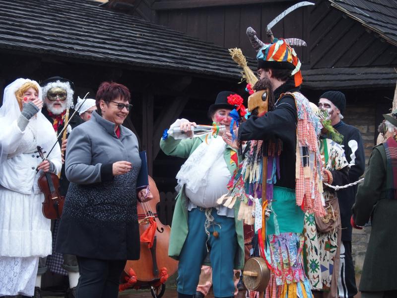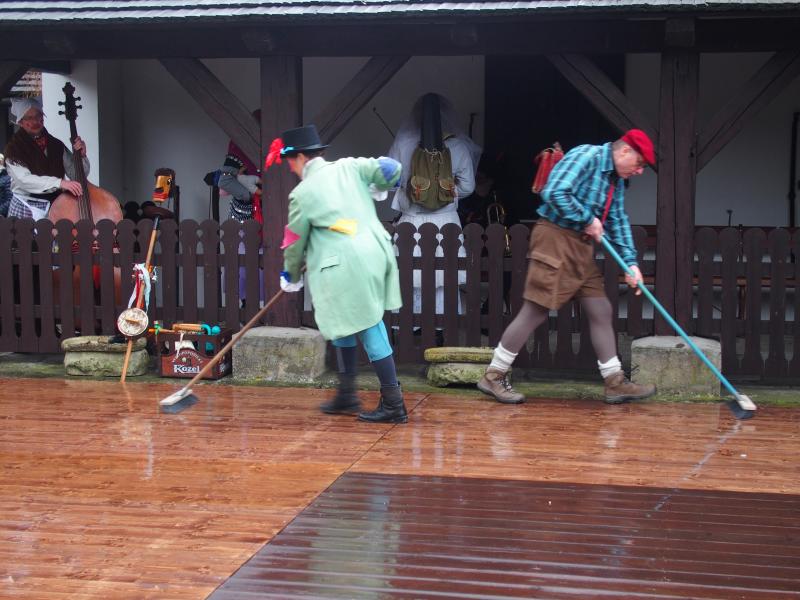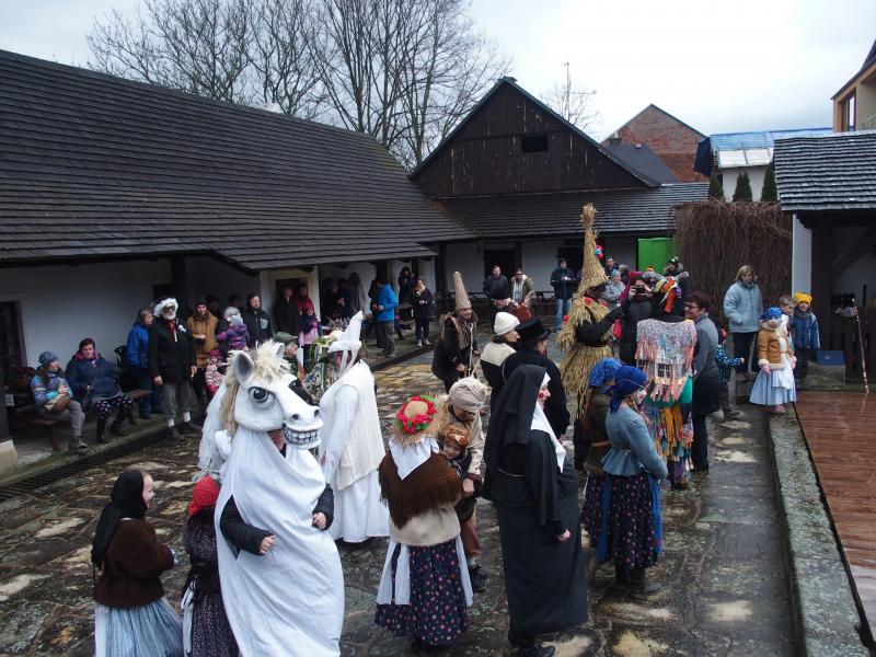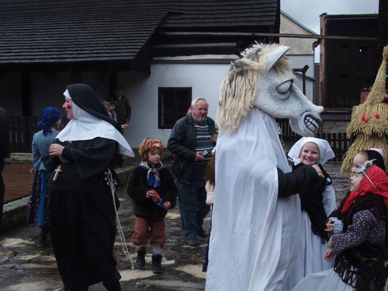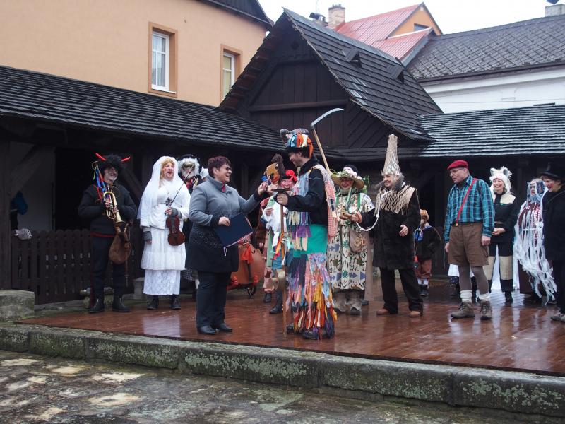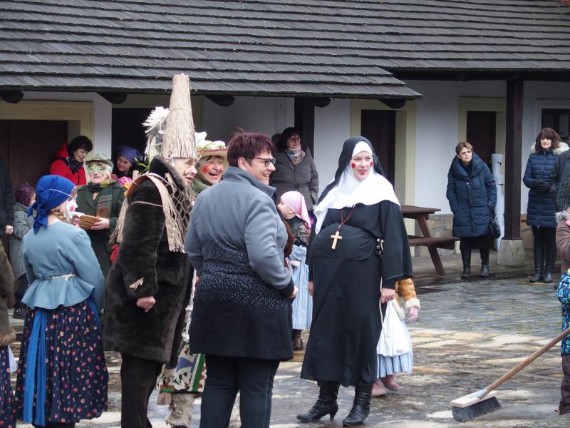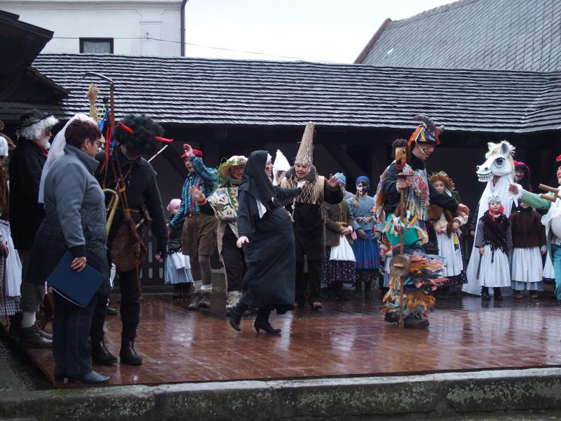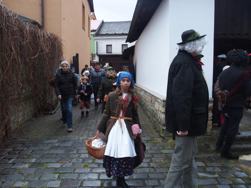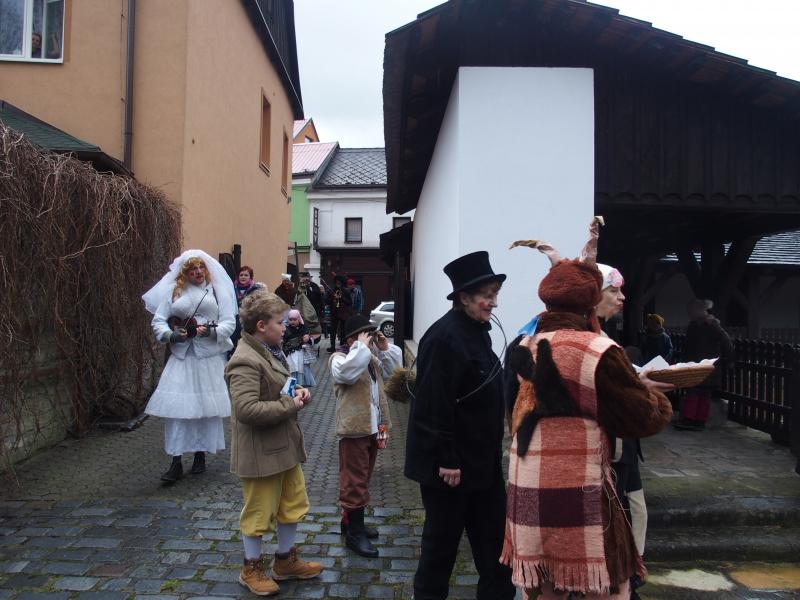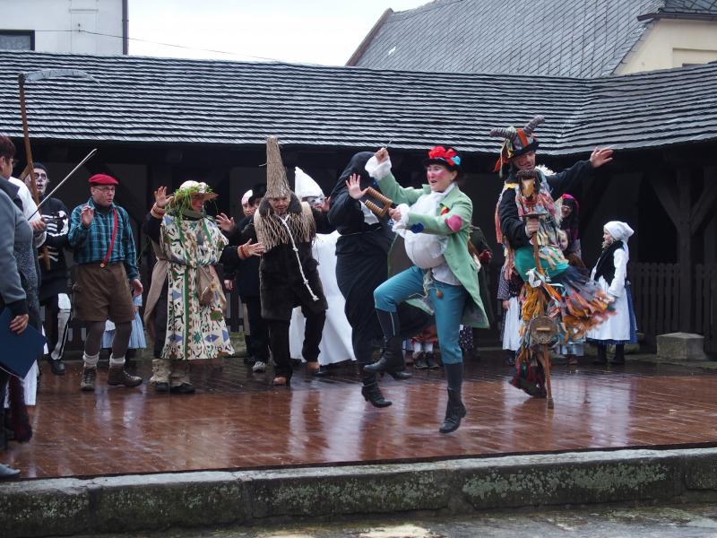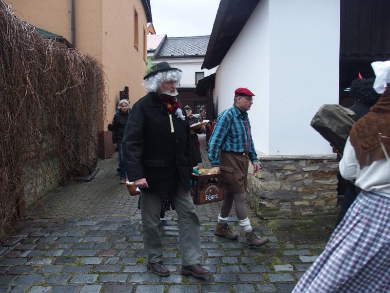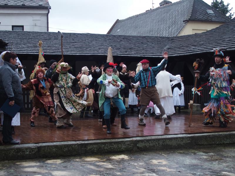 Pak už vypukl nefalšovaný masopust v podání členů Folklorního souboru Barunka z České Skalice a jejich přátel. Pro příchozí byly připraveny zabíjačkové dobroty, jitrnice, jelítka. V roztopeném brutaru se vařil ovar, nechyběla ani tradiční polévka prdelačka nebo chleba se škvarky. Masopustní průvod potom vyrazil na náměstí, kde ho přivítala řada měšťanů nějakou tou šťopičkou ostré vody a něčím dobrým k snědku.
