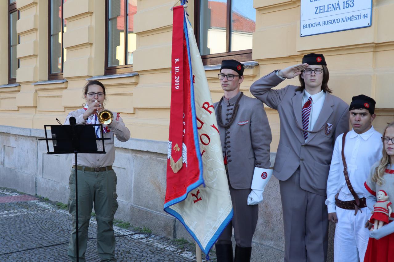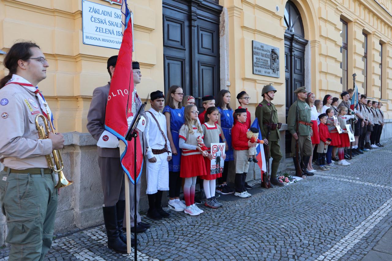 Starosta TJ Sokol bratr Vladimír Fischer připomněl význam Dne sokolstva, položil květiny k pomníčku českoskalických sokolů, kteří zahynuli během druhé světové války, děti dostaly balónky s logem Sokola a společně pak všichni odešli k řece Úpě. Zde děti pouštěly lodičky se svíčkami a světýlka plující po řece připomínala osud sokolských hrdinů, kteří položili život za naši svobodu.