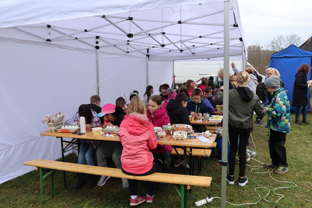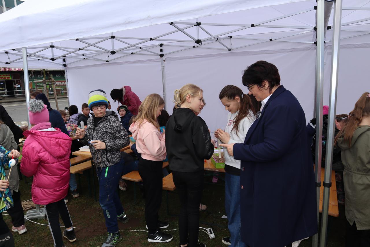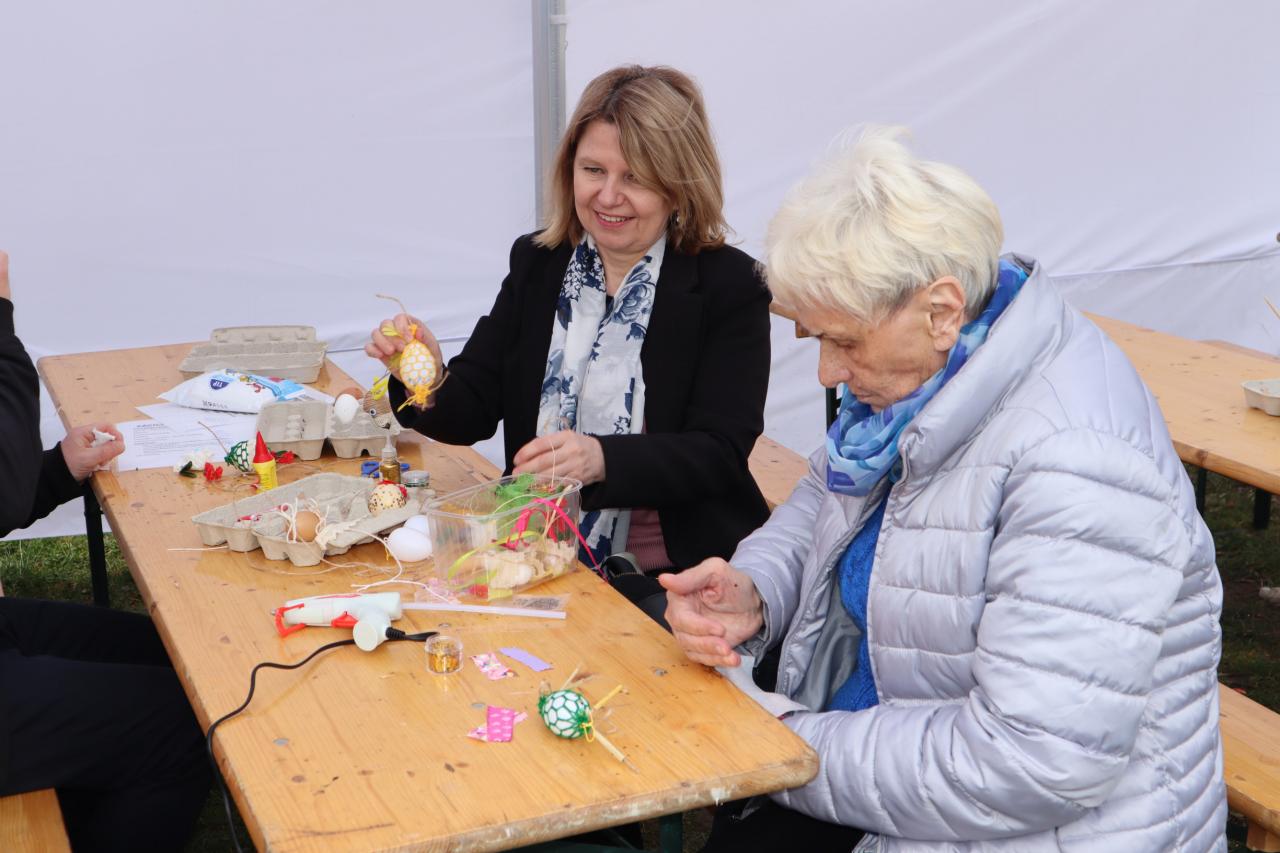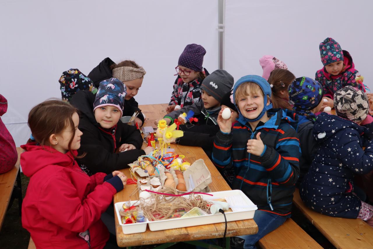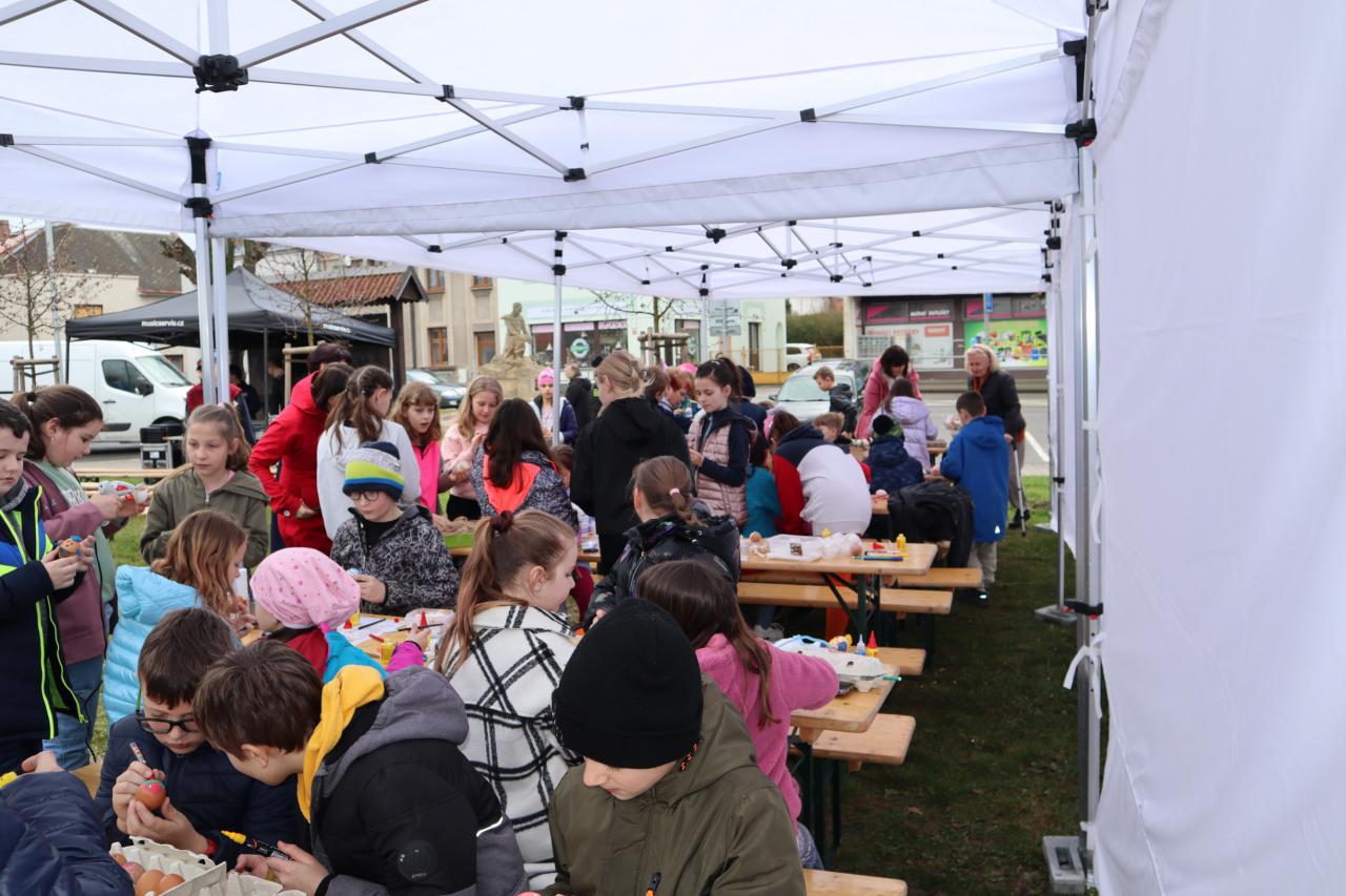 Fotografie z akce Kraslice pro náměstí v České Skalici. Děti ze školky, školy a školní družiny malovaly kraslice. Výrobu velikonočních vajíček si zkusili i návštěvníci z Polska. Děti ze Základní umělecké školy Česká Skalice, soubor Viktorka, hudební skupiny Trosky z Mečova a Pěnice ze České Skalice