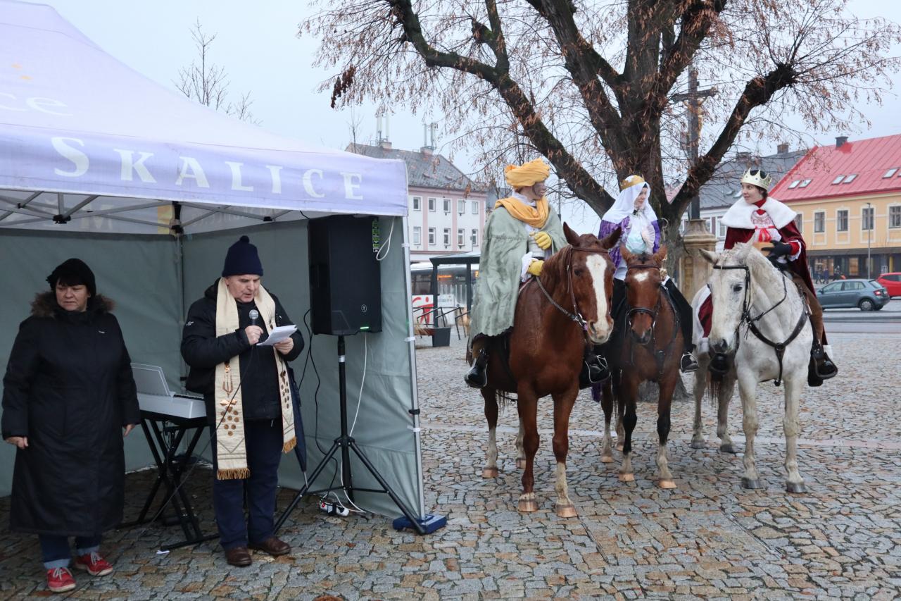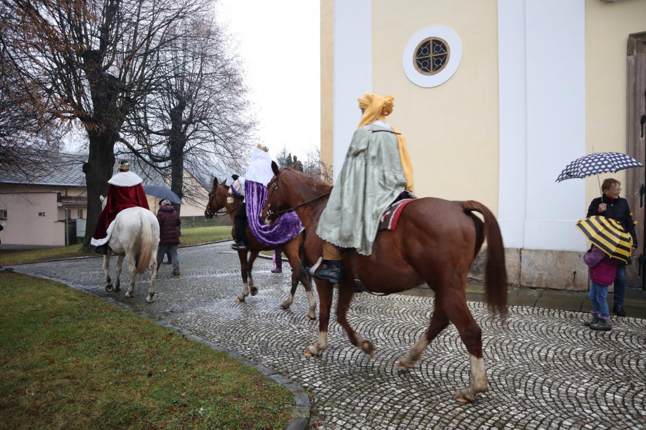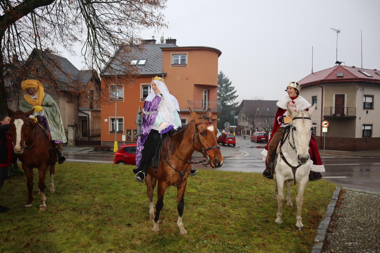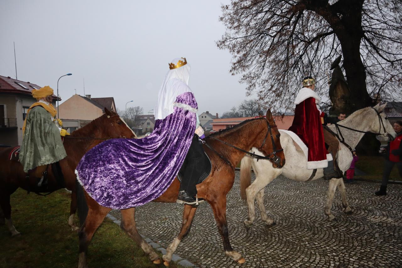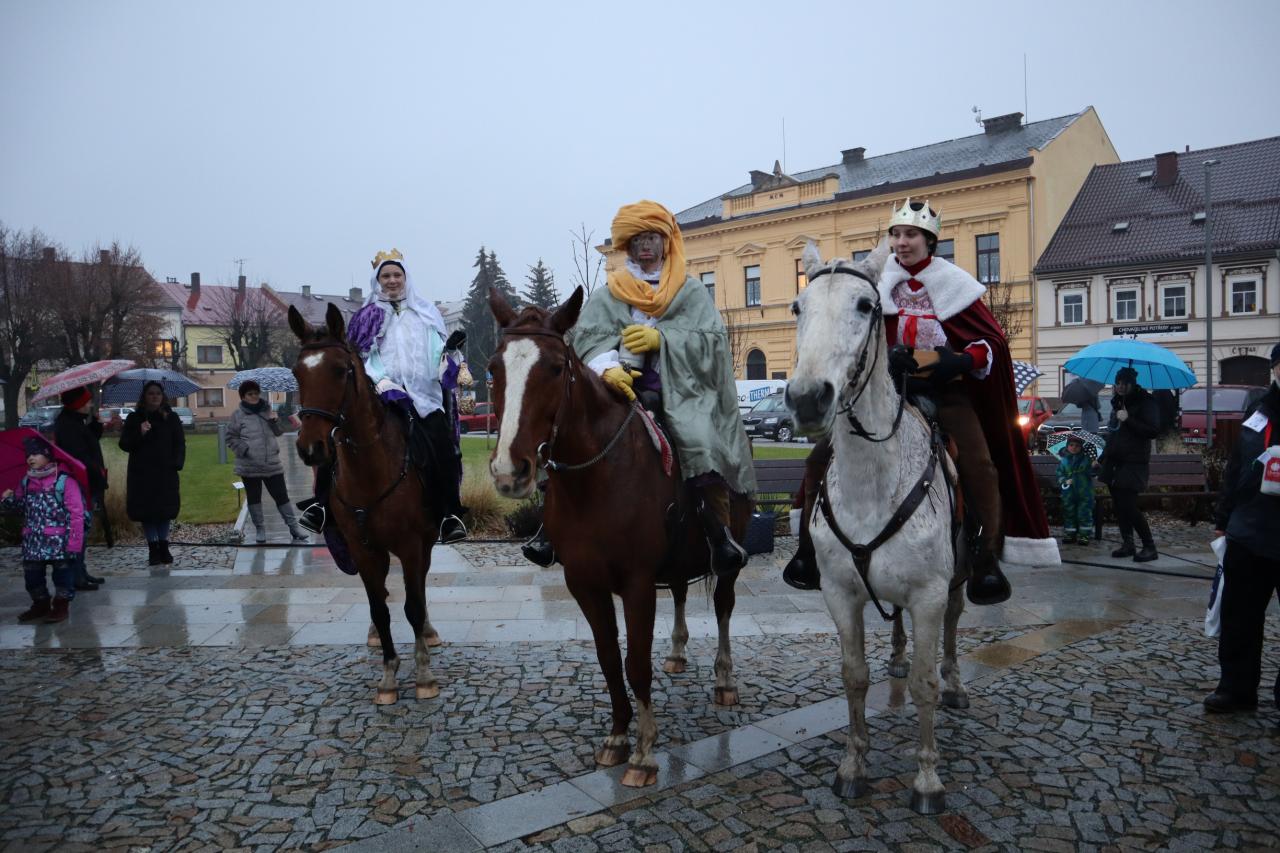 Tříkrálový průvod na podporu charitativní Tříkrálové sbírky prošel naším městem od kostela Nanebevzetí Panny Marie na Husovo náměstí. Celou trasu vinou špatného a deštivého počasí absolvovalo jenom zhruba asi dvacet občanů včetně dětí. V čele průvodu šli tři králové na koních.