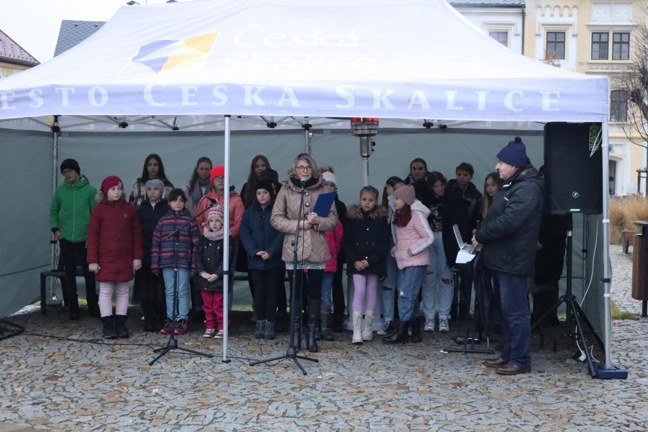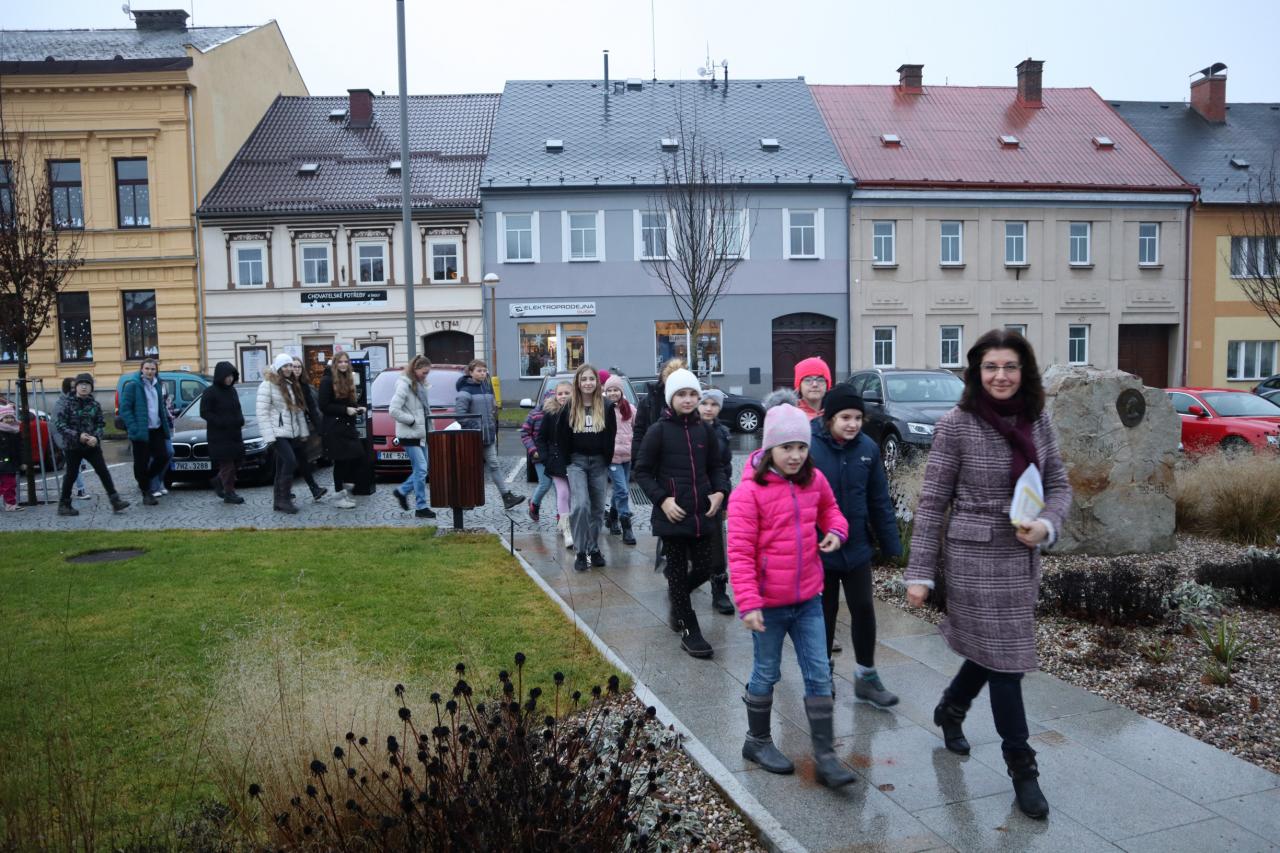 Na Husově náměstí ale čekali další lidé, takže nakonec měla akce důstojnou účast. Dokonce i chvíli přestalo pršet. Paní místostarostka Gabriela Jiránková přivítala přítomné a vyjádřila přání, aby se ve sbírce vybrala podobná částka jako vloni nebo ještě lépe vyšší. V roce 2022 se totiž podařilo na Českoskalicku vybrat částku 100 251 Kč, což je oproti létům minulým velká nárůst. V roce 2019 se totiž vybralo 78 675 Kč.