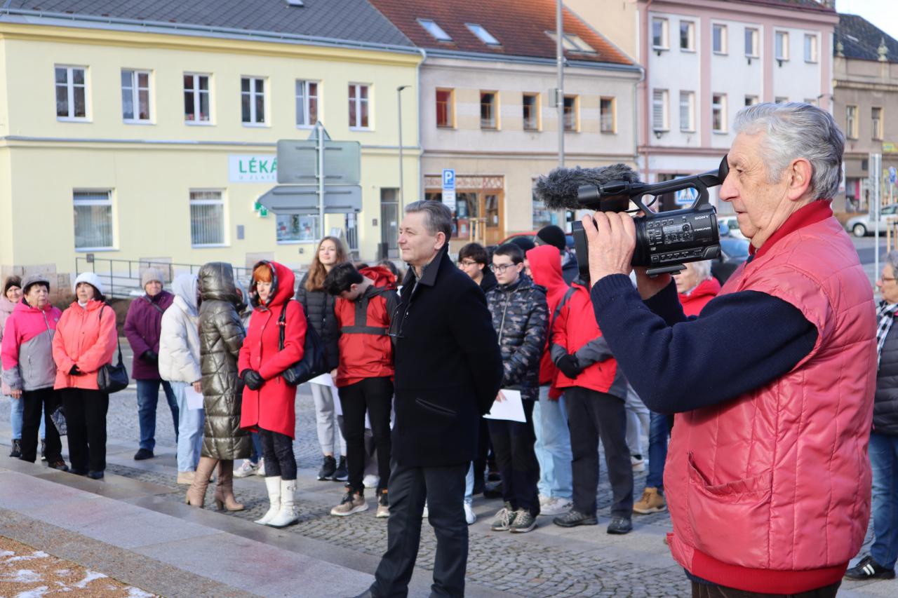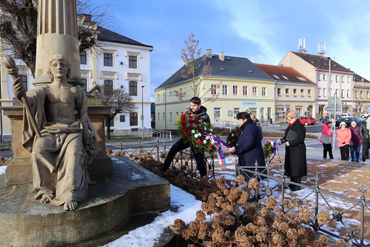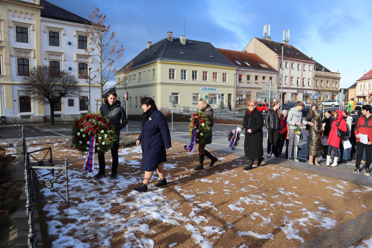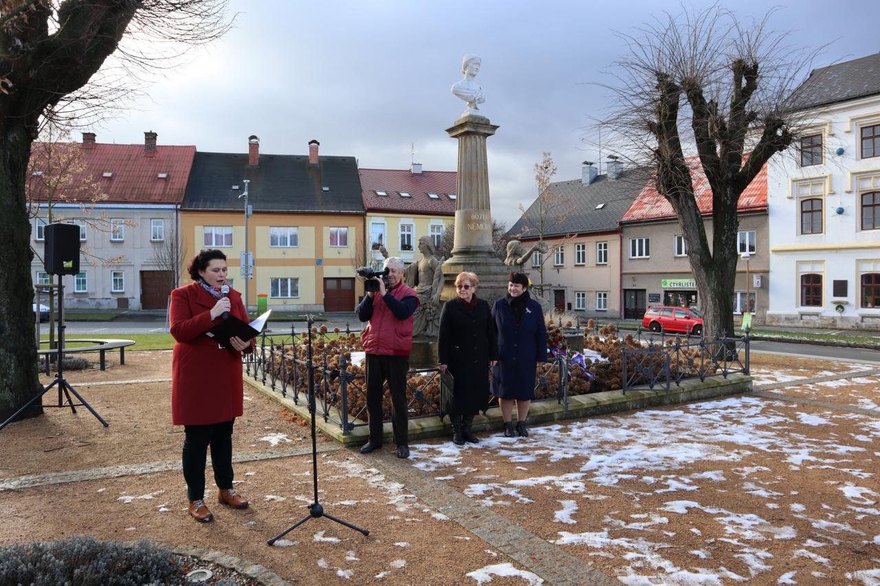 Město Česká Skalice zastupovala paní starostka Zuzana Jungwirthová. Slavnost uváděla vedoucí odboru kultury Martina Zálišová. Hned v úvodu položili květiny k pomníku zástupci vedení města Česká Skalice a přítomných spolků.