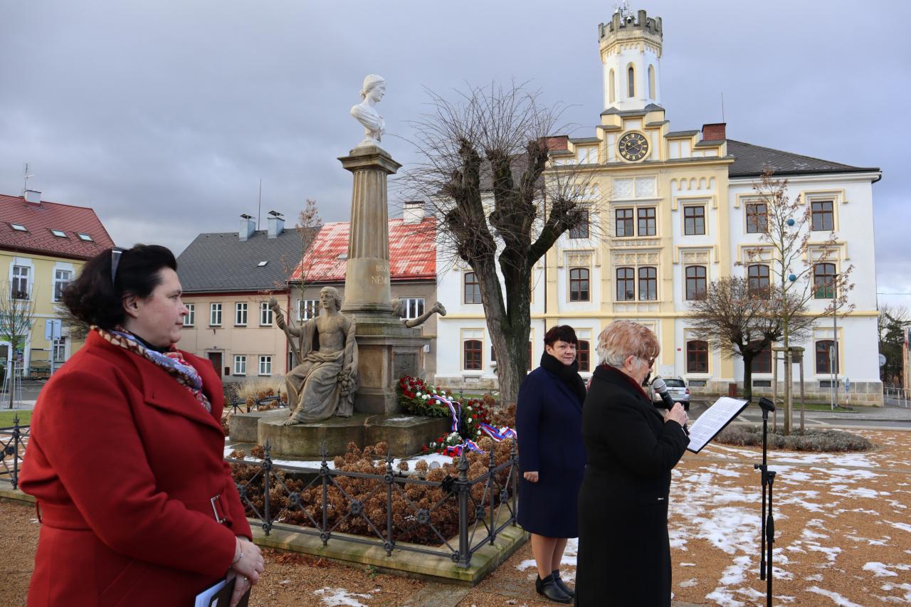 Několik desítek občanů se sešlo u pomníku Boženy Němcové na Husově náměstí. Uctili tak její památku netradičně dva dny před datem jejího údajného narození.