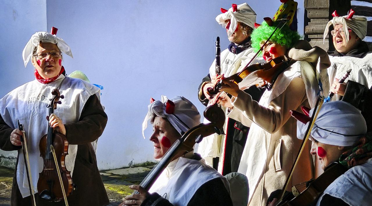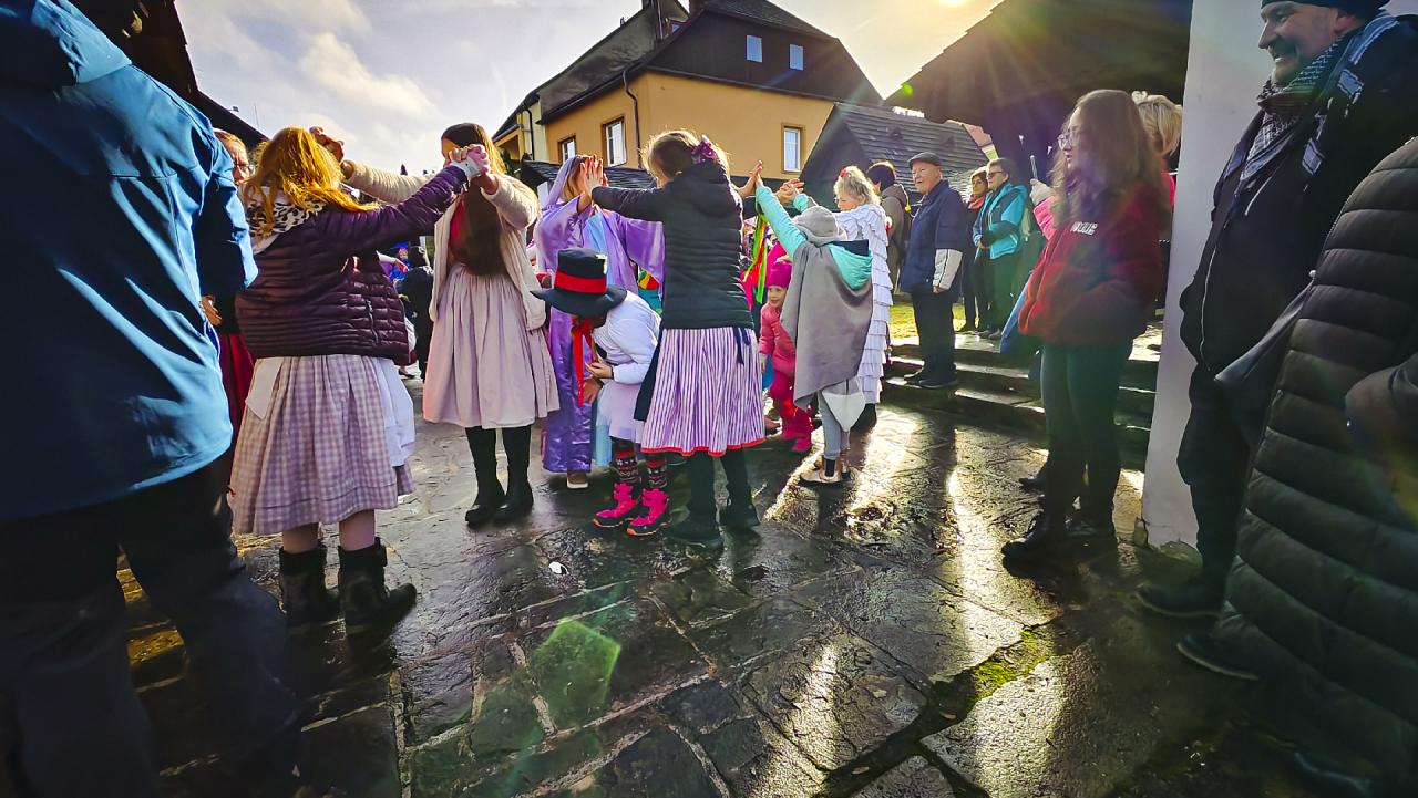 Město Česká Skalice, Lidová muzika Šmikuranda, Středisko volného času Bájo a dětský folklorní soubor Hadářek z Červeného Kostelce uspořádali masopustní veselici v centru našeho města v sobotu 10. února.