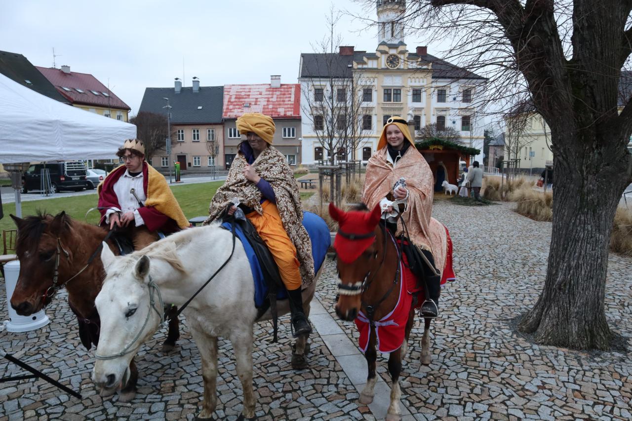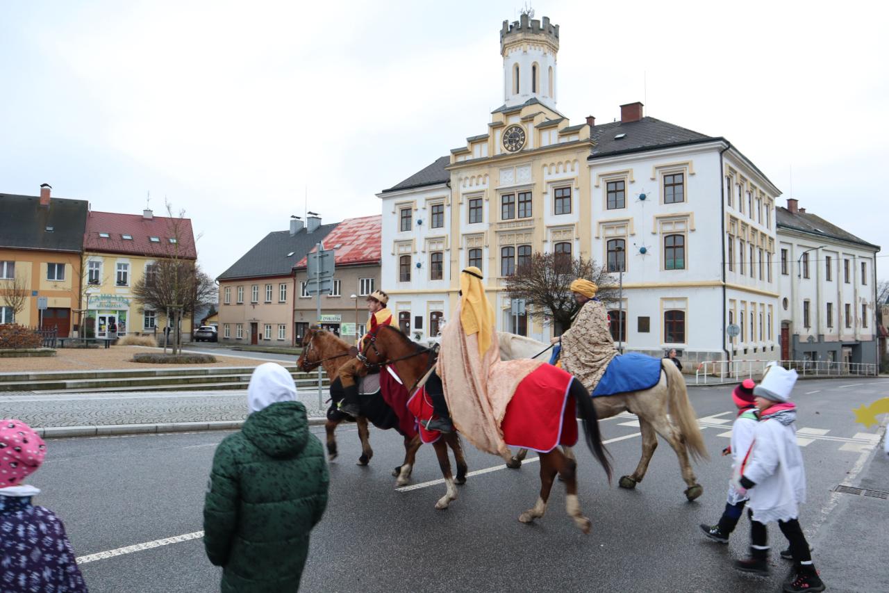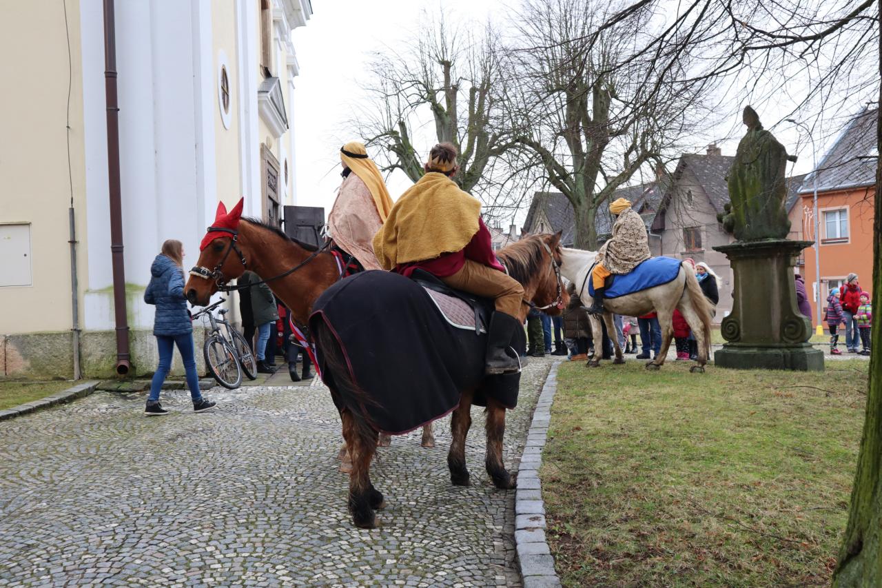 V sobotu odpoledne vyšel průvod Tří králů na koních od kostela Nanebevzetí Panny Marie Havlíčkovou ulicí přes lávku do Podskalní ulice a ulicí Boženy Němcové na Husovo náměstí. U kostela koledníkům požehnal římskokatolický farář Adam Depa. V čele průvodu kráčeli Tři králové na nádherných koních. Šlo o členy zapsaného spolku Dubno. Průvodu se zúčastnilo více než sto lidí, převážně rodičů s malými dětmi. „Je vidět, že tato akce má smysl, že dokáže přilákat účastníky“, prohlásila starostka města Zuzana Jungwirthová.