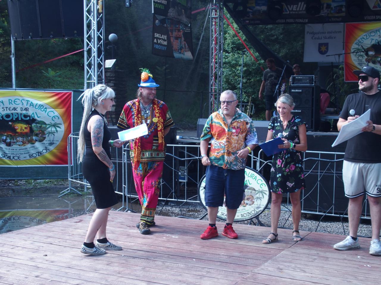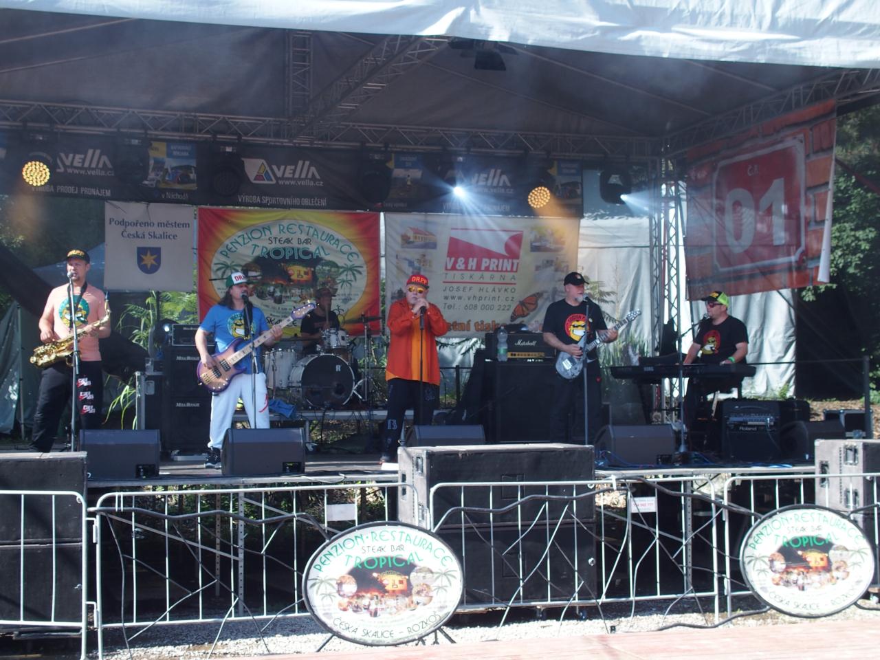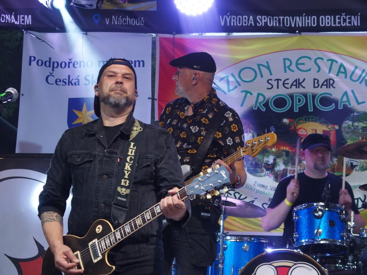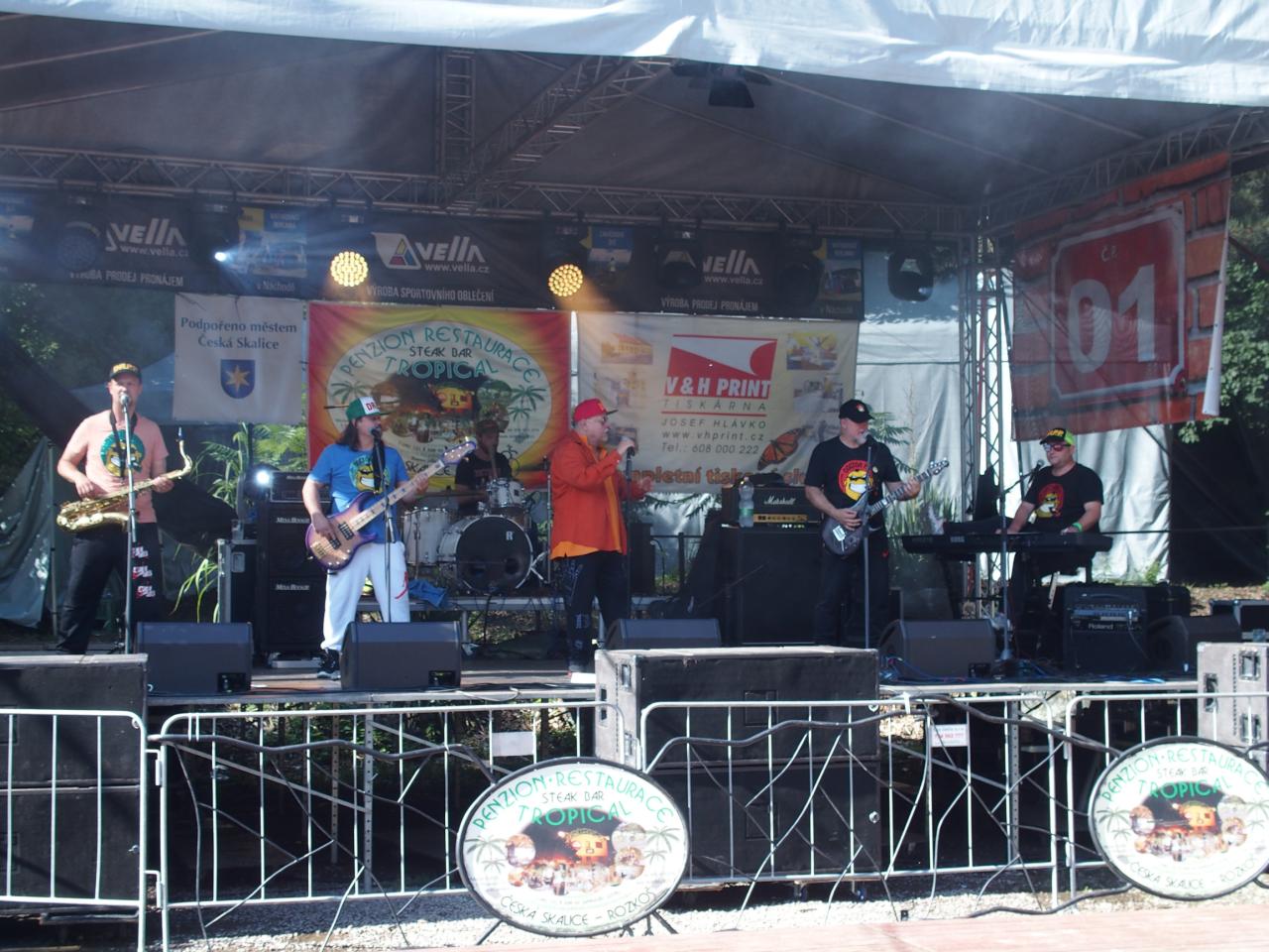 Na pódiu u Tropicalu od pátku do neděle vystoupilo bezmála 16 hudebních uskupení nebo zpěváků. Z pátečního programu vyčnívala výtečná českoskalická kapela Furt Fajn, jejíž produkce zaplnila parkoviště u restaurace snad do posledního místečka. V sobotu se hlavně rockeři těšili na veselé party Heebie Jeebies a De Bill Heads. Obě kapely podporují Tropickou charitativní pouť dlouhodobě. Své příznivce potěšily, zahrály opravdu ty největší hity ze svého repertoáru.