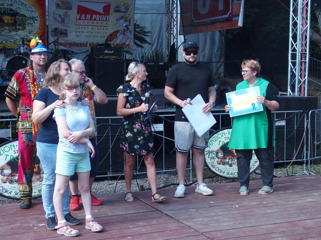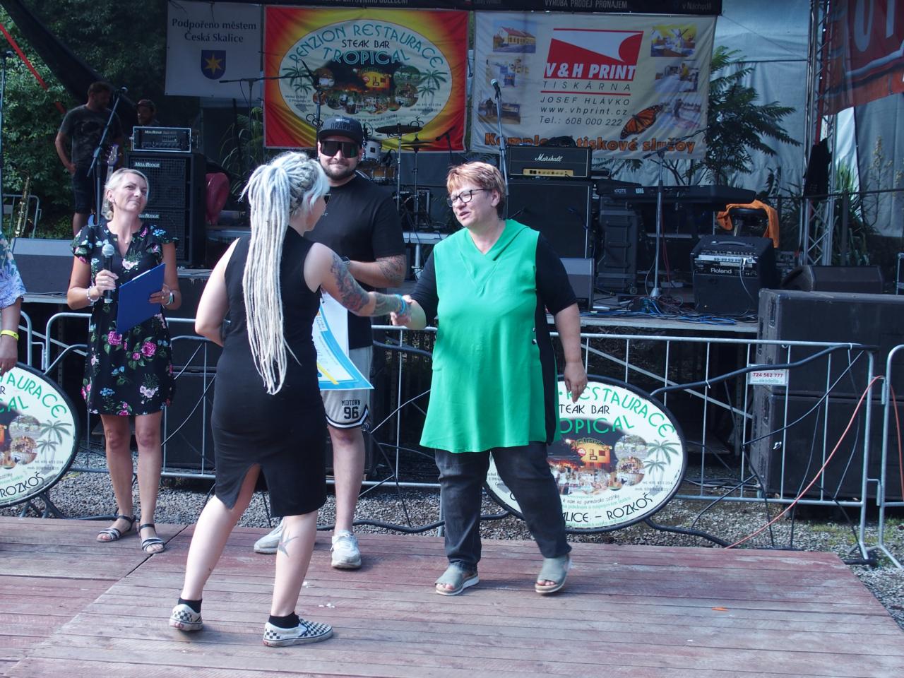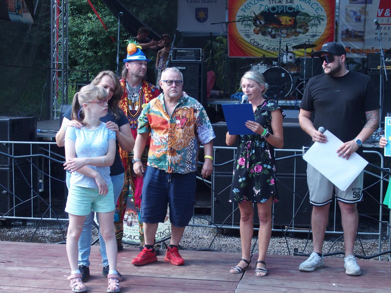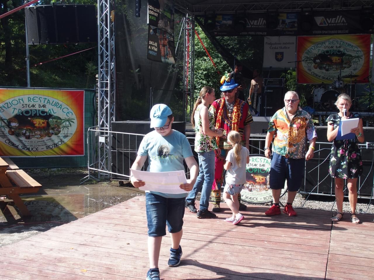 Na pódiu u Tropicalu od pátku do neděle vystoupilo bezmála 16 hudebních uskupení nebo zpěváků. Z pátečního programu vyčnívala výtečná českoskalická kapela Furt Fajn, jejíž produkce zaplnila parkoviště u restaurace snad do posledního místečka. V sobotu se hlavně rockeři těšili na veselé party Heebie Jeebies a De Bill Heads. Obě kapely podporují Tropickou charitativní pouť dlouhodobě. Své příznivce potěšily, zahrály opravdu ty největší hity ze svého repertoáru.