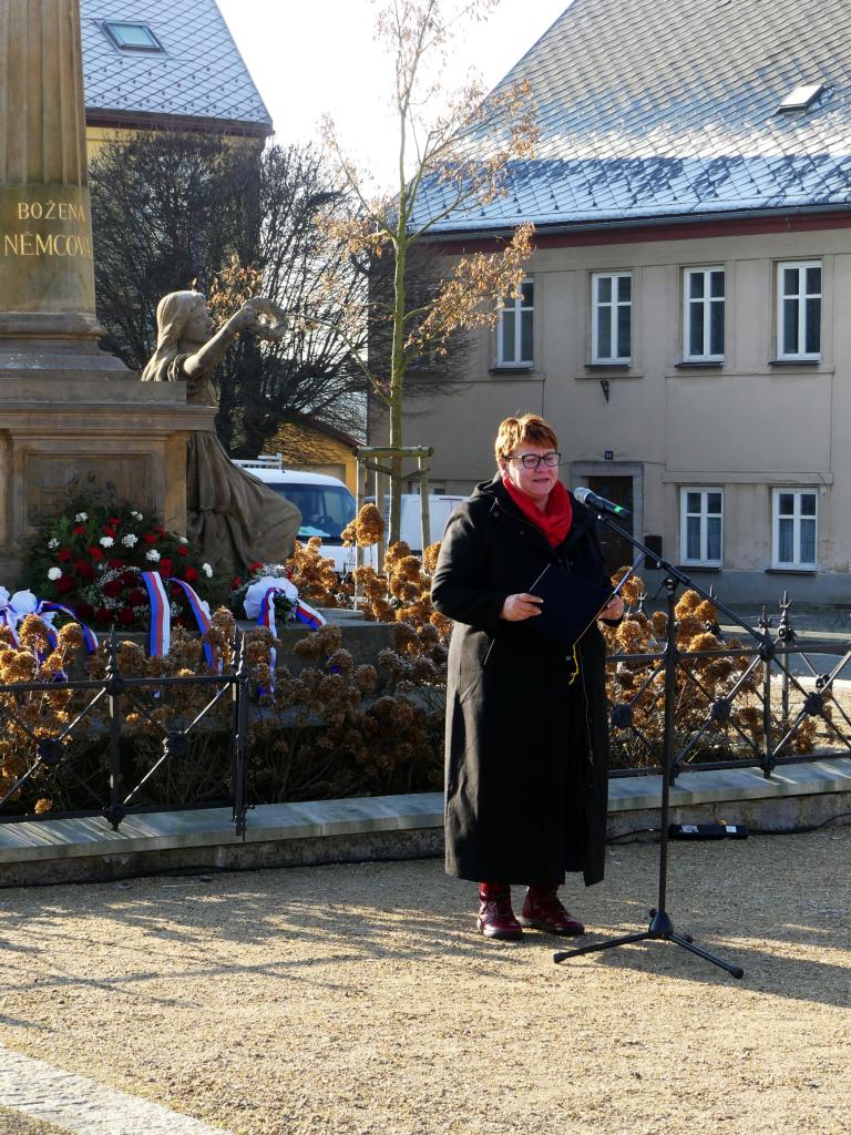 Letos jsme si v České Skalici připomněli již 205. výročí narození spisovatelky Boženy Němcové. U jejího pomníku se sešlo několik desítek lidí, kteří položili květiny a věnce. Květinové dary věnovali zástupci města Česká Skalice, Muzea Boženy Němcové, Společnosti Boženy Němcové, českoskalického Sokola a Klubu českých turistů.