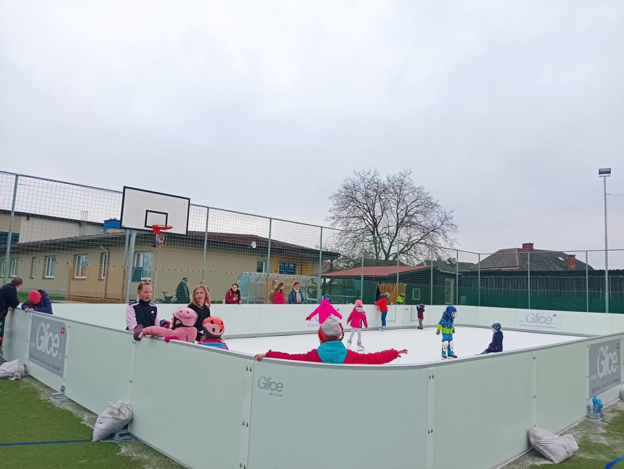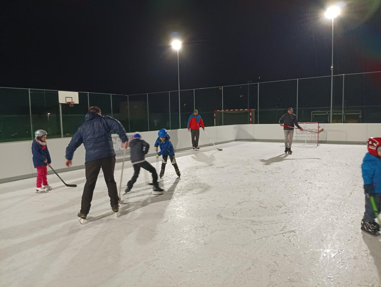 Naše město bude mít zapůjčeno kluziště se syntetickým ledem o rozměru 20 x 10 m, tzn. 200 m2. Je určeno pro 25 dětí – max. 30 osob. Kluziště bude doplněno mantinely typu hobby, tedy může se zde hrát tzv. lehký rybniční hokej.