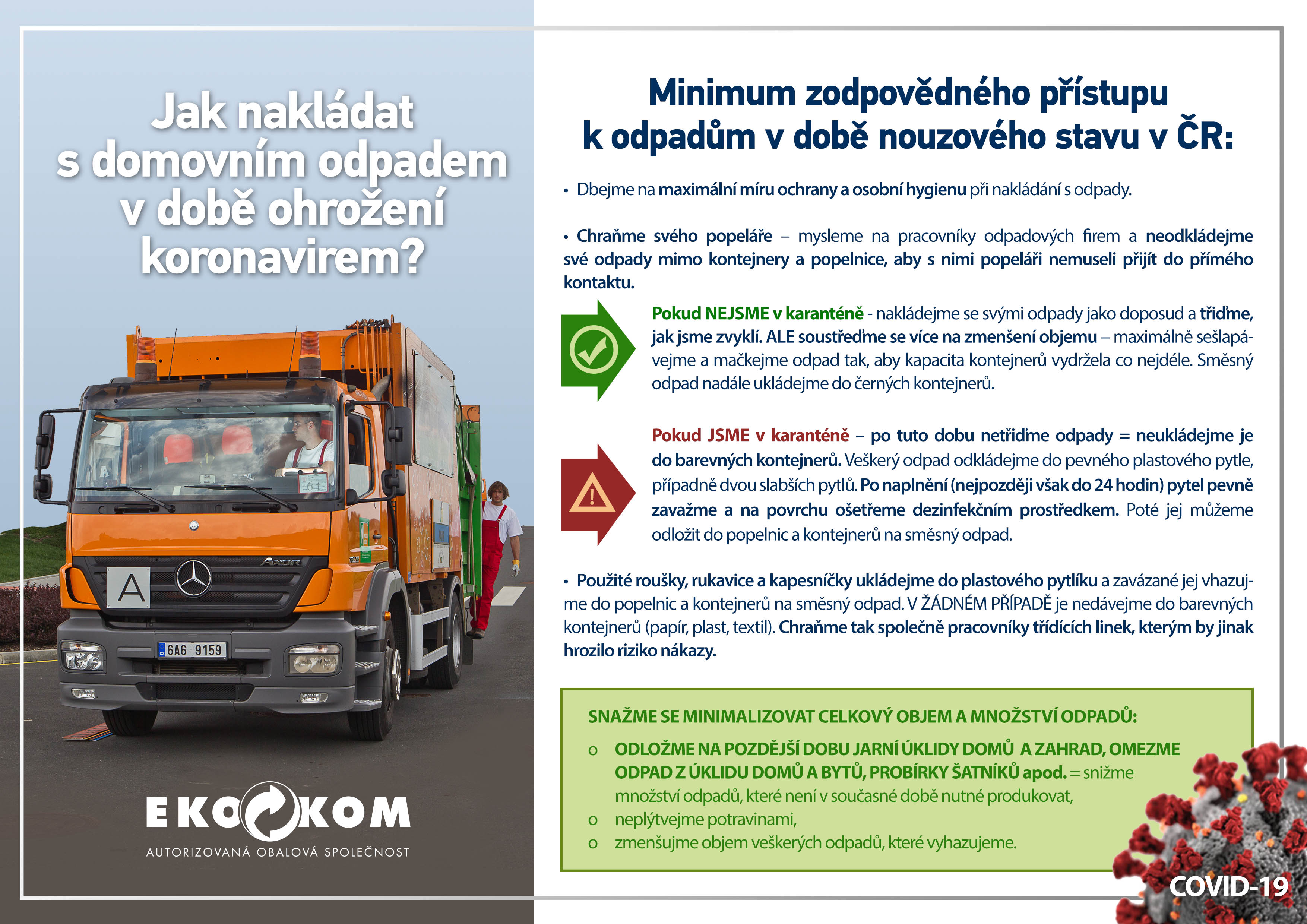 Příkládáme rovněž leták společnosti Ekokom s titulem "Minimum zodpovědného přístupu k odpadům v době nouzového stavu ČR"