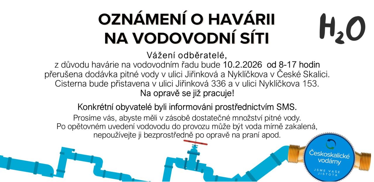 Prosíme vás, abyste měli v zásobě dostatečné množství pitné vody.