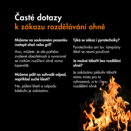 Hejtman Královéhradeckého kraje Martin Červíček vyhlásil období mimořádných klimatických podmínek. Pro celé území kraje platí zákaz rozdělávání ohně ve volné přírodě i například pálení klestí na zahradách. Zákaz platí od 10. 7. 2023 do odvolání.