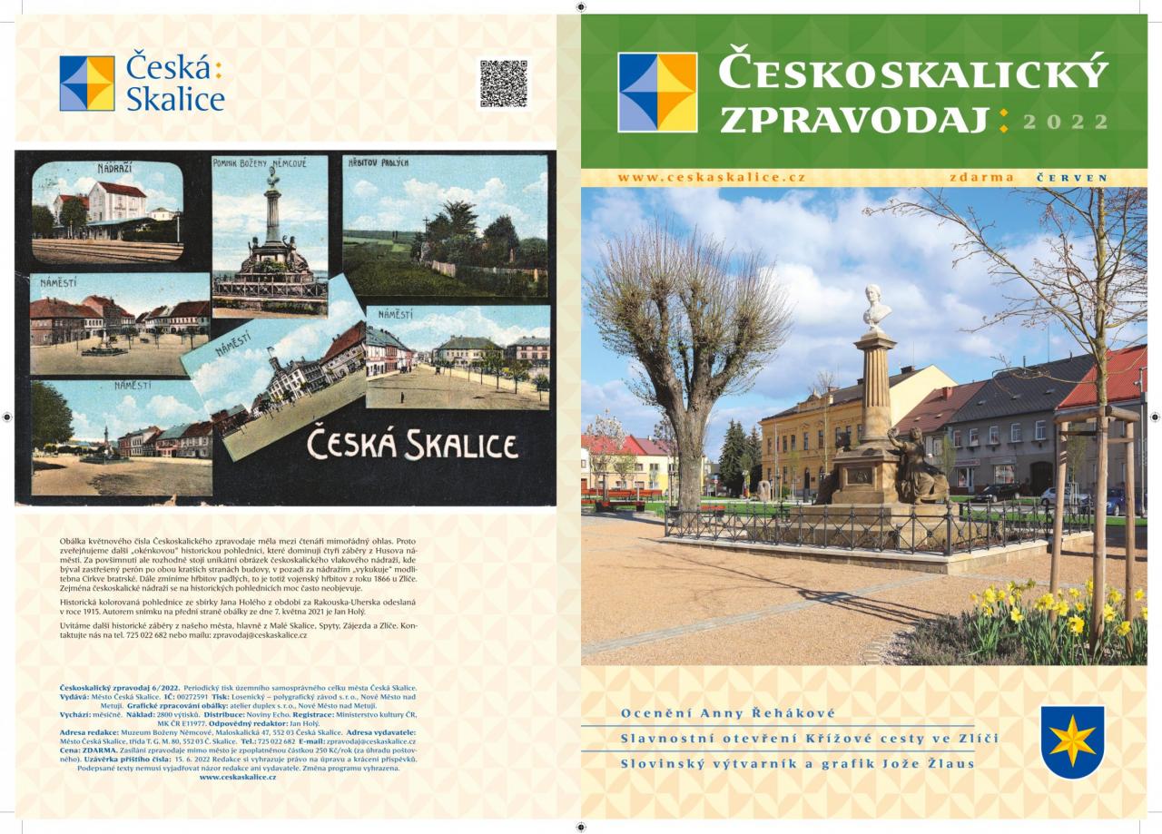 Vyšel červnový Českoskalický zpravodaj Datum vydání elektronické verze: 26. 5. 2022 Datum vydání tištěné verze: 26. 5. 2022 Termín distribuce tištěné verze: do 1. 6. 2022 (včetně)