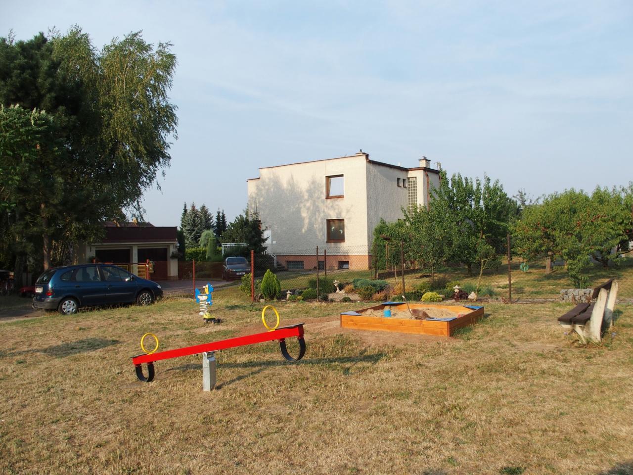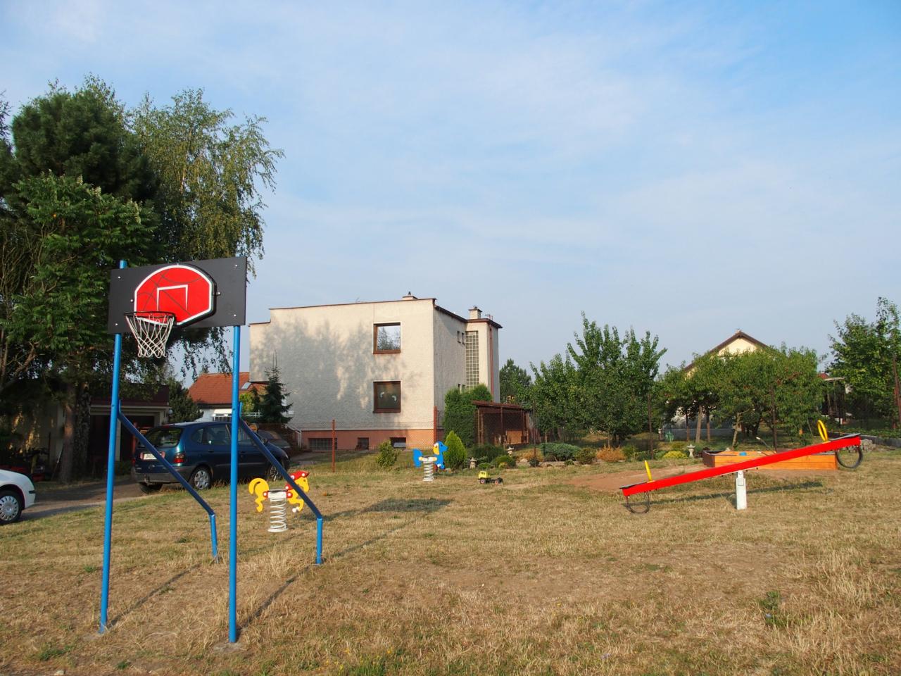 Pískoviště a prolézačky, koš na basketbal.