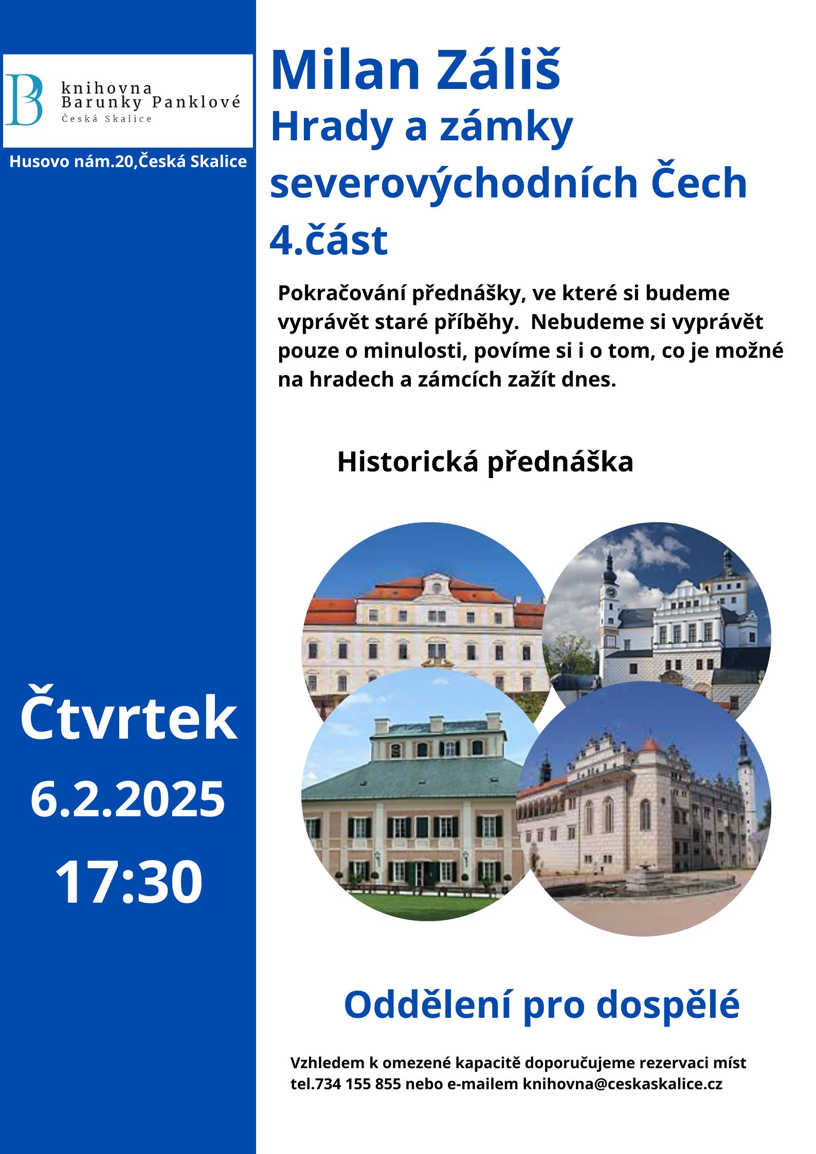 Vzhledem ke kapacitě doporučujeme rezervaci míst na telefonu 734 155 855.