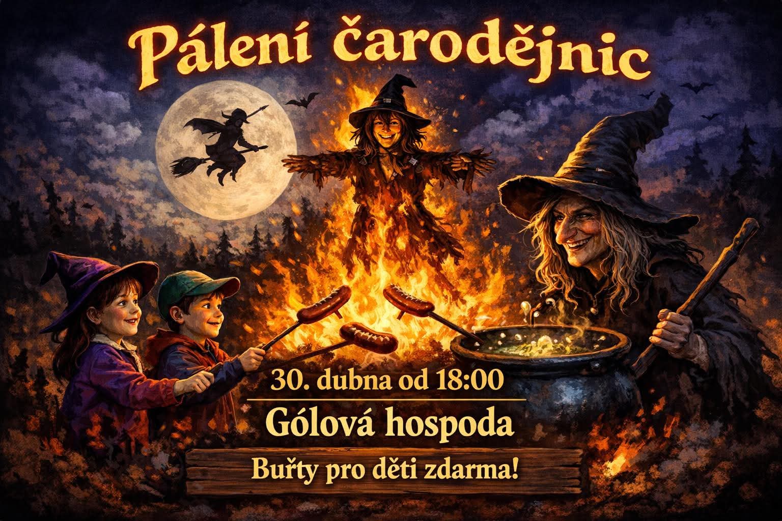 Gólová hospoda na fotbalovém hřišti vás zve na pálení čarodějnic. Buřty pro děti zdarma. Občerstvení zajištěno.