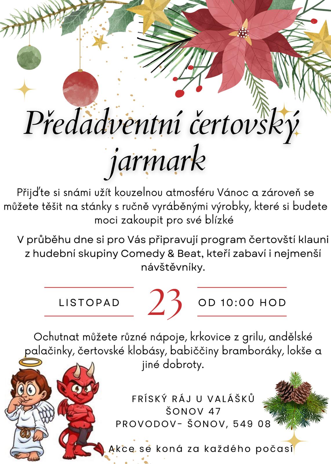 Ochutnat můžete různé nápoje, krkovici z grilu, andělské palačinky, čertovské klobásy, babiččiny bramoráky, lokše a jiné dobroty.