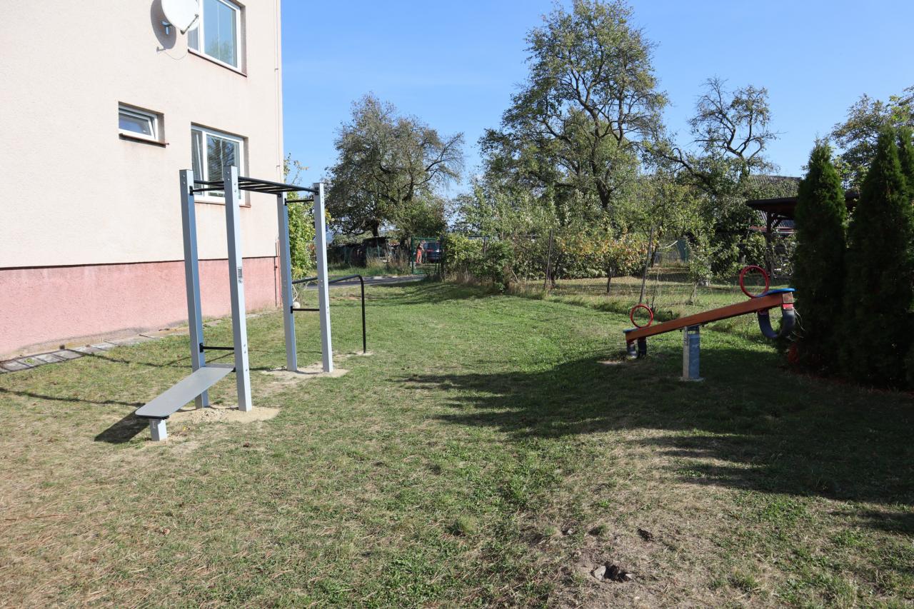 Plácek s prolézačkami a houpačkami, houpačka žába a workoutová sestava